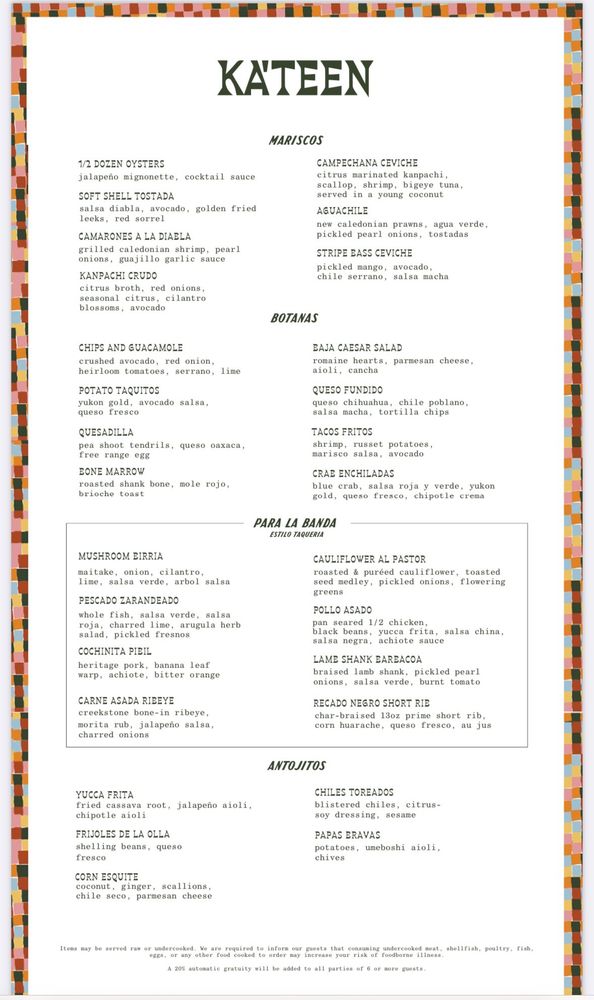 Ka’teen Menu
